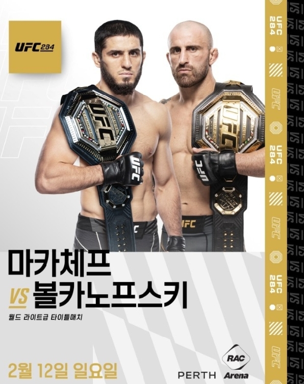 볼카노프스키 대 마카체프 리치 체급과 상대전적을 보면 흥미롭다. 서로가 22승을 하고 패배는 거의 없다. 무결점 파이터 두명이 맞붙는 경기라 할 수 있다. 체급은 마카체프가 175cm로 다소 앞서지만 리치는 181cm인 볼카노프스키가 2cm 가량 더 길다. 신장은 작지만 팔 길이는 더 긴 편이다. 두 선수 간은 처음 대결이라 상대전적은 존재하지 않는다.